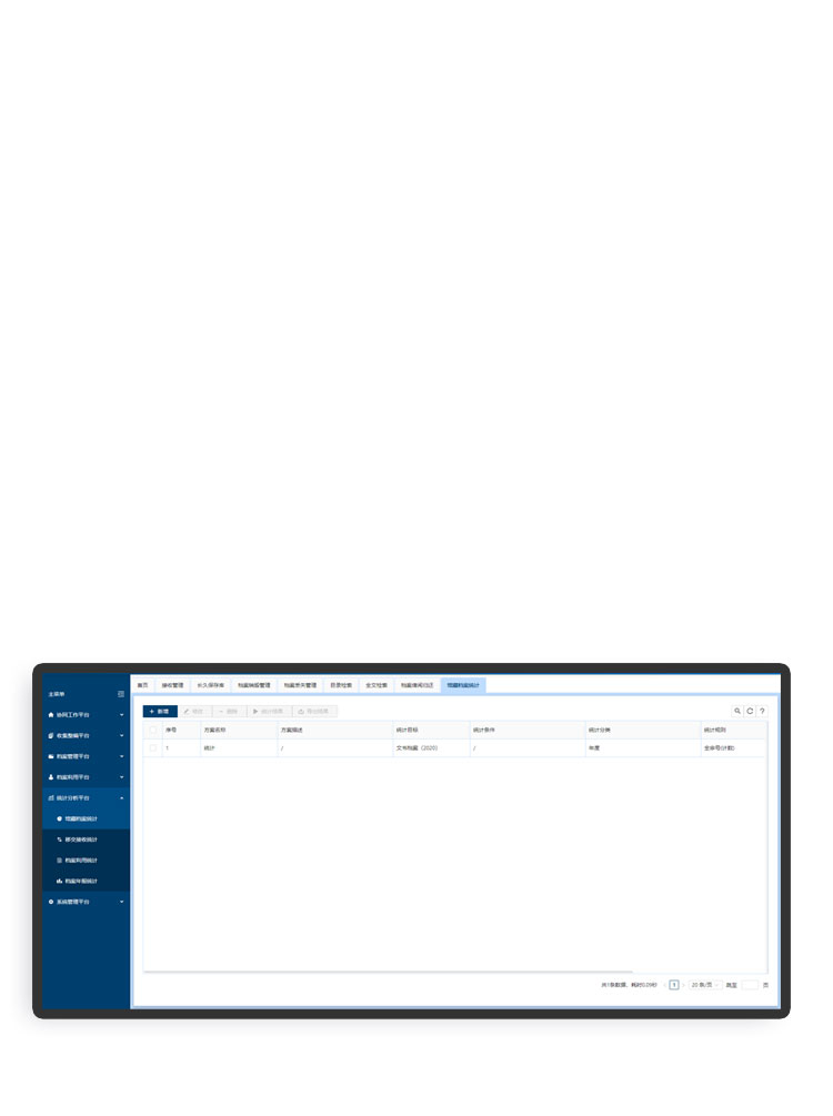 對長久保存庫中的檔案進行多維度的統(tǒng)計,可以跨全宗、檔案門類統(tǒng)計